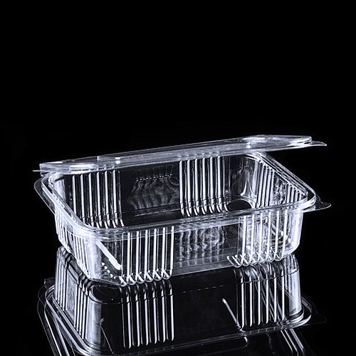 Σκεύος από PET με ενσωματωμένο καπάκι, με υδατοστεγές κλείσιμο κατάλληλα για συσκευασία τροφίμων υγρών και στερεών.